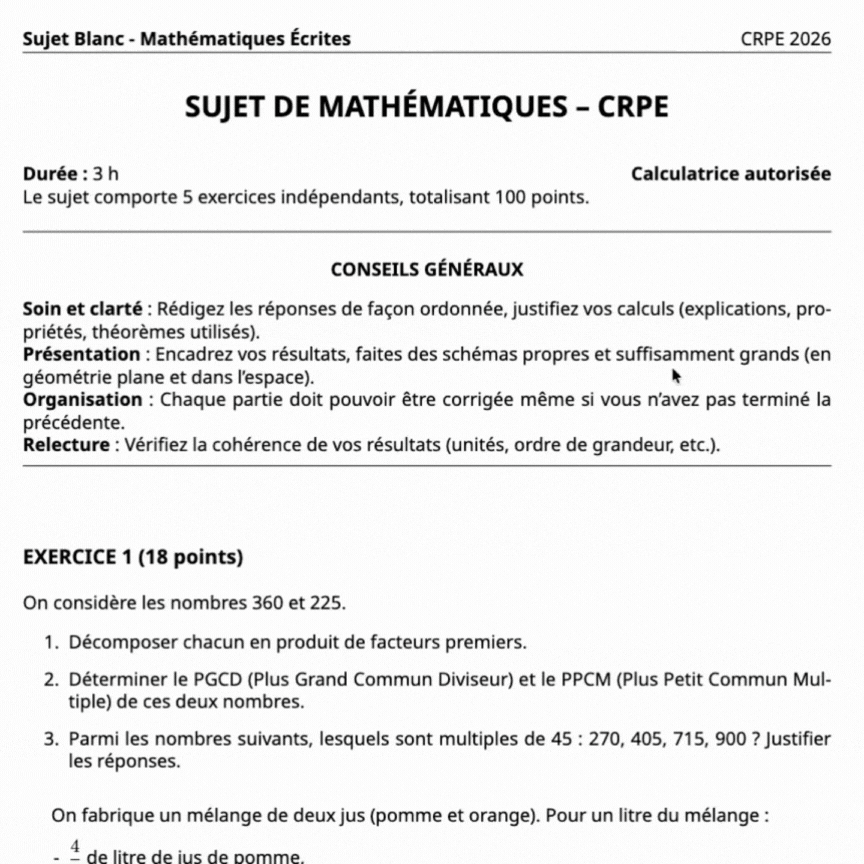 Il vaut mieux se tromper maintenant avec moi, plutôt que le jour du concours ! Ces sujets sont calibrés sur le niveau réel du CRPE 2026. Si vous bloquez, c'est une excellente nouvelle : cela met en lumière une lacune précise que nous allons combler immédiatement avec la correction détaillée. Ne voyez pas ces sujets comme un test sanction, mais comme un outil de diagnostic. Chaque erreur que vous faites ici est un piège dans lequel vous ne tomberez pas le jour J.