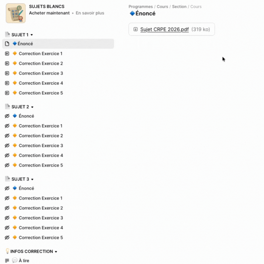 Une fois votre achat effectué, les sujets vont progressivement se débloquer selon le planning suivant.