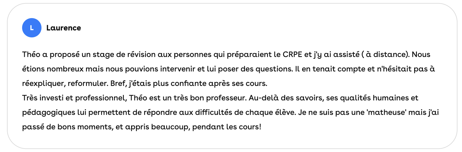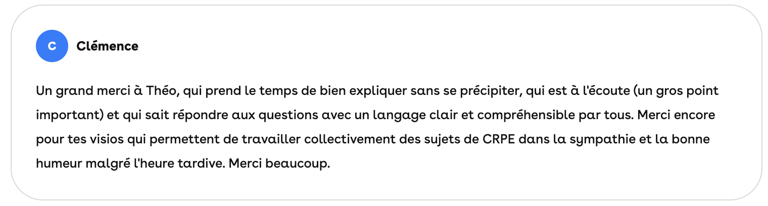 J'espère que cette petite anecdote te montre combien ton accompagnement au CRPE est précieux et utile, au-delà même du résultat au CRPE