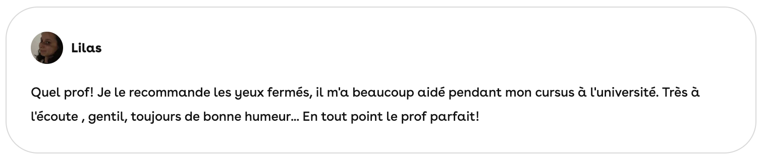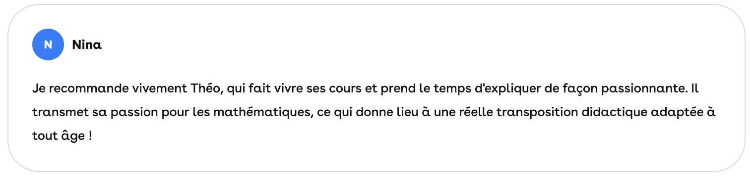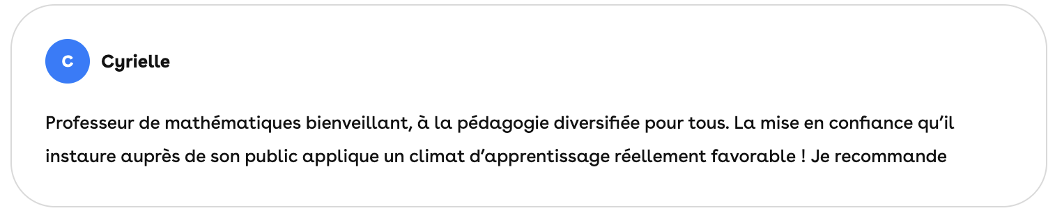 ◾️ Cela fait 11 ans que je suis professeur en Mathématiques et que j'accompagne en cours individuels et collectifs des élèves de Collège, Lycée et Supérieur, totalisant plus de 800 élèves suivis.