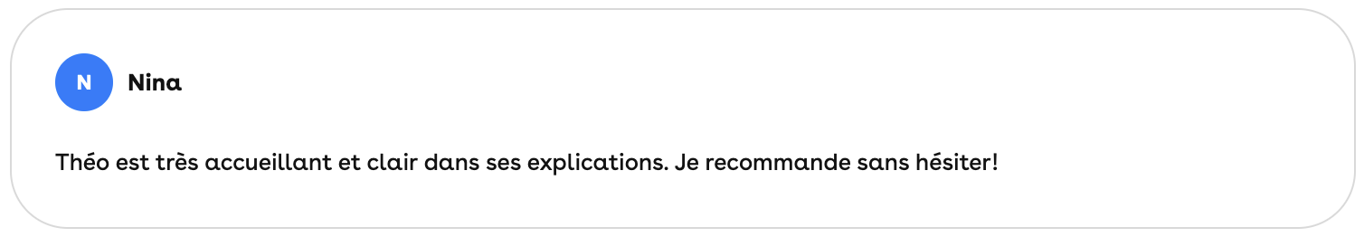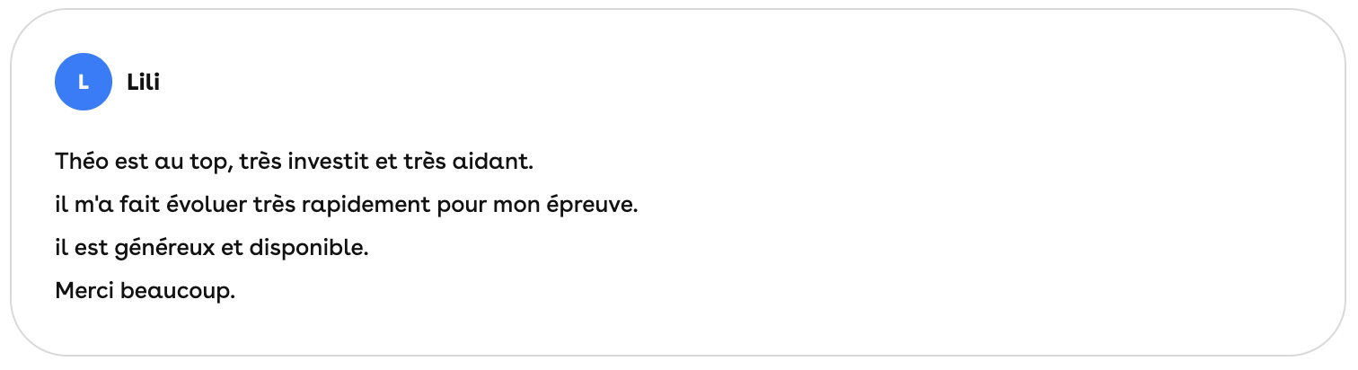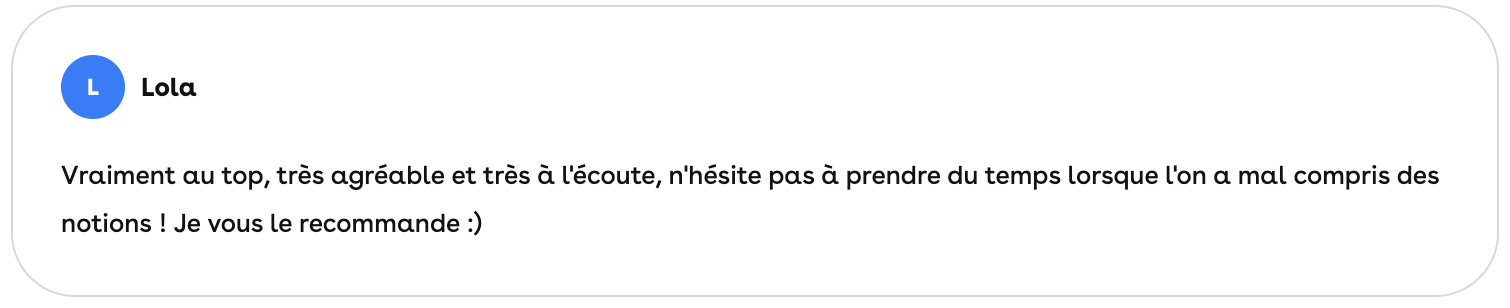 encore un grand merci pour cet accompagnement qui couplé avec un investissement personnel est une belle réussite. J'espère que la promo 2026 aura le même succès que moi.
