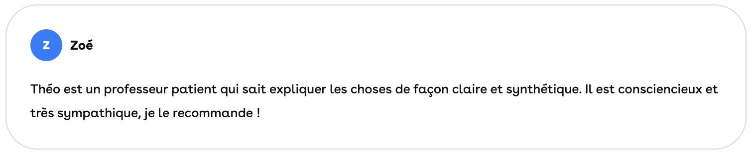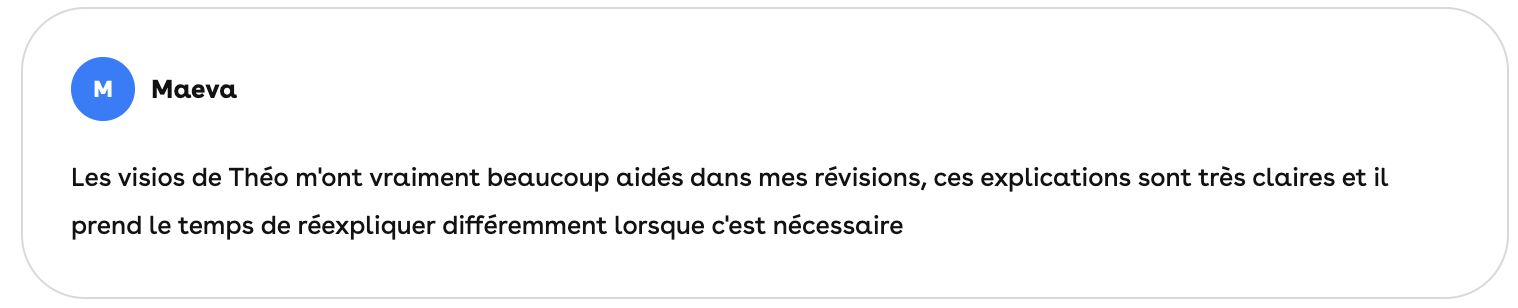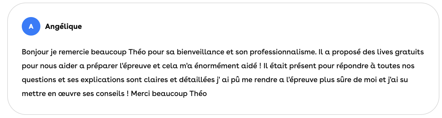 ✅ Audit vidéo individuel : Je vous enregistre une vidéo privée où je commente votre copie, pointe vos erreurs spécifiques et vous dis comment gagner des points.