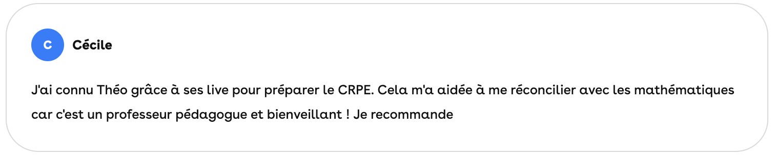 Vous n'êtes plus seul(e) face à vos révisions... j'ai fondé "Maths CRPE avec Théo" une prépa à taille humaine, une chaîne YouTube avec près de 1300 abonnés, un groupe Facebook avec plus de 3000 membres.